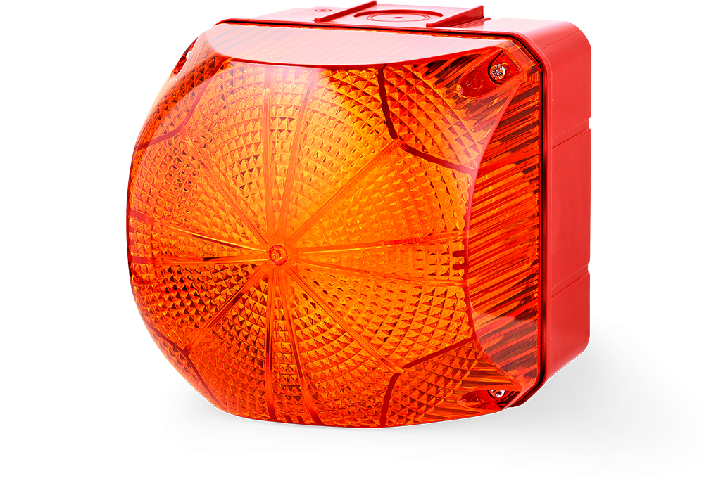 Auer Signal QDS series LED beacon with 94mm diameter dome. IP66 rated for indoor and outdoor use. Steady or flashing light modes, 230/240VAC. Ideal for machine status indication, process signalling, and hazard warning.