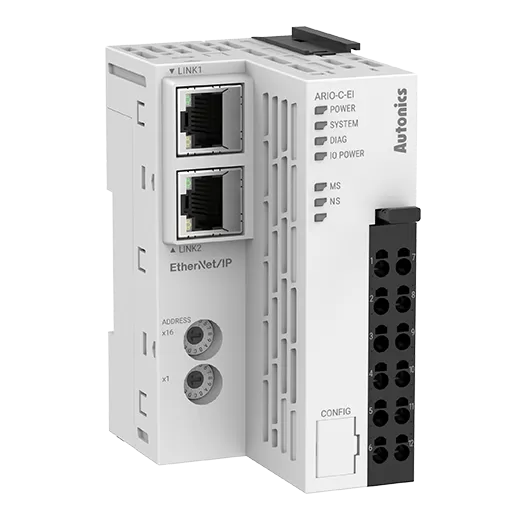Autonics ARIO-C slim remote IO coupler for the ARIO slice IO system. Connects IO slice modules to your industrial network. Select the protocol for your fieldbus.