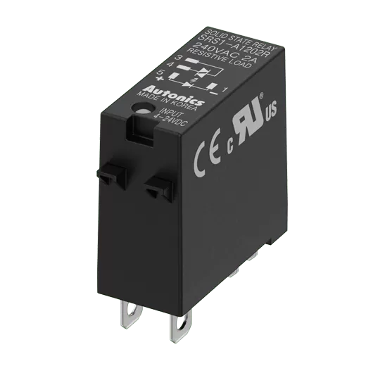 Autonics SRS1 series plug-in solid state relay for DIN rail mounting. Compact design plugs into SK-G05 socket (sold separately).