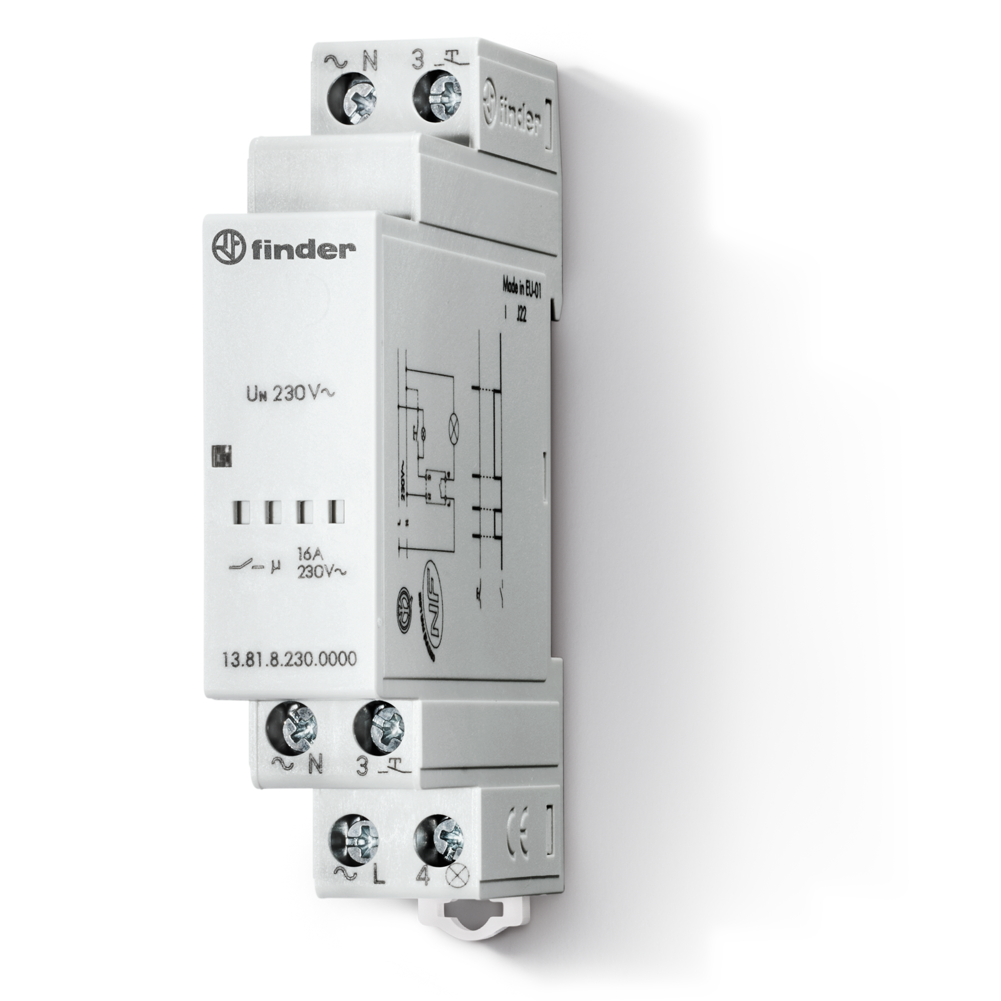 Electronic Relays, Modular step relay, 35 mm rail (EN 60715) mount, 35.8 mm wide, 1 pole, 16 A, AC supply version, nominal voltage 230 V, operating from 184 to 253 V, rated power 3 VA, AgSnO2, Contact circuit: NO, ambient temperature from -10 to +60 °C