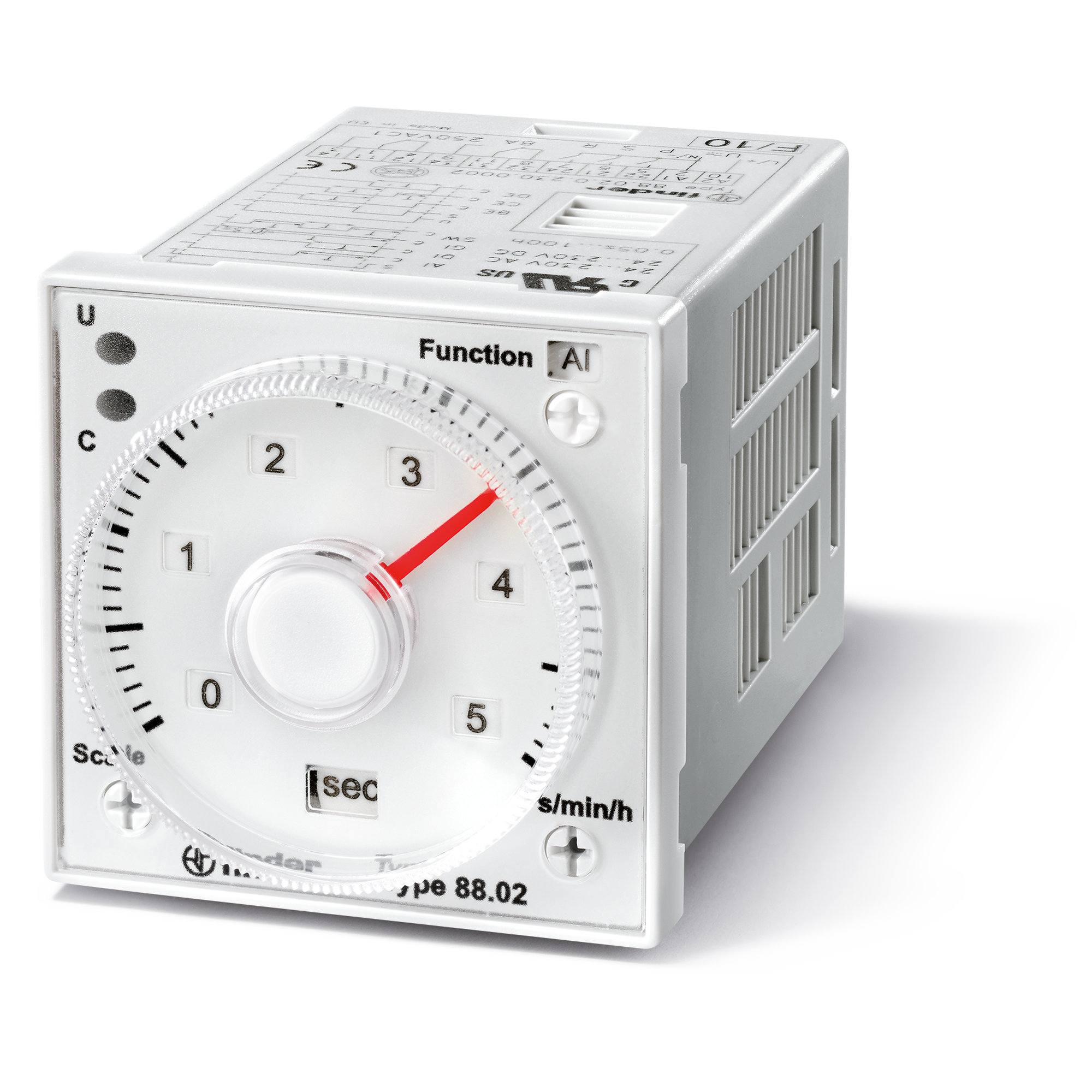 Finder TIMER, MULTIFUNCTION ANALOG, 48x48mm, 2CO 8A@250VAC, 24-240VAC/DC 11 PIN PLUG-IN