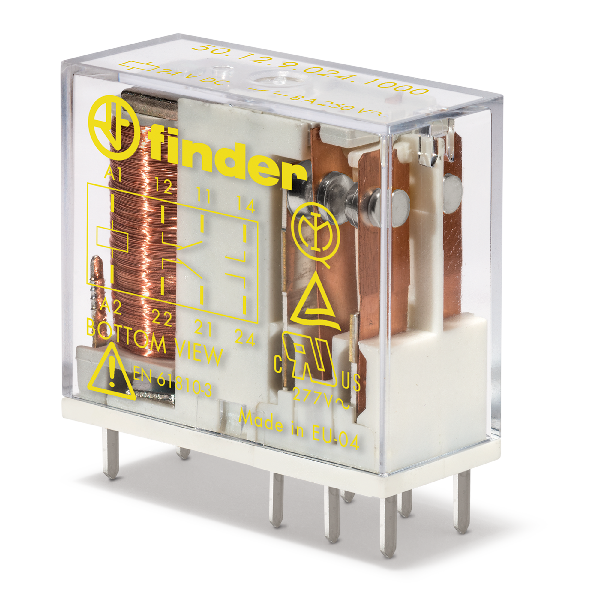 Finder Type 50.12 RELAY FORCE GUIDED CONTACTS, PCB + SOCKET MOUNT, 2 CO 8A@250VAC