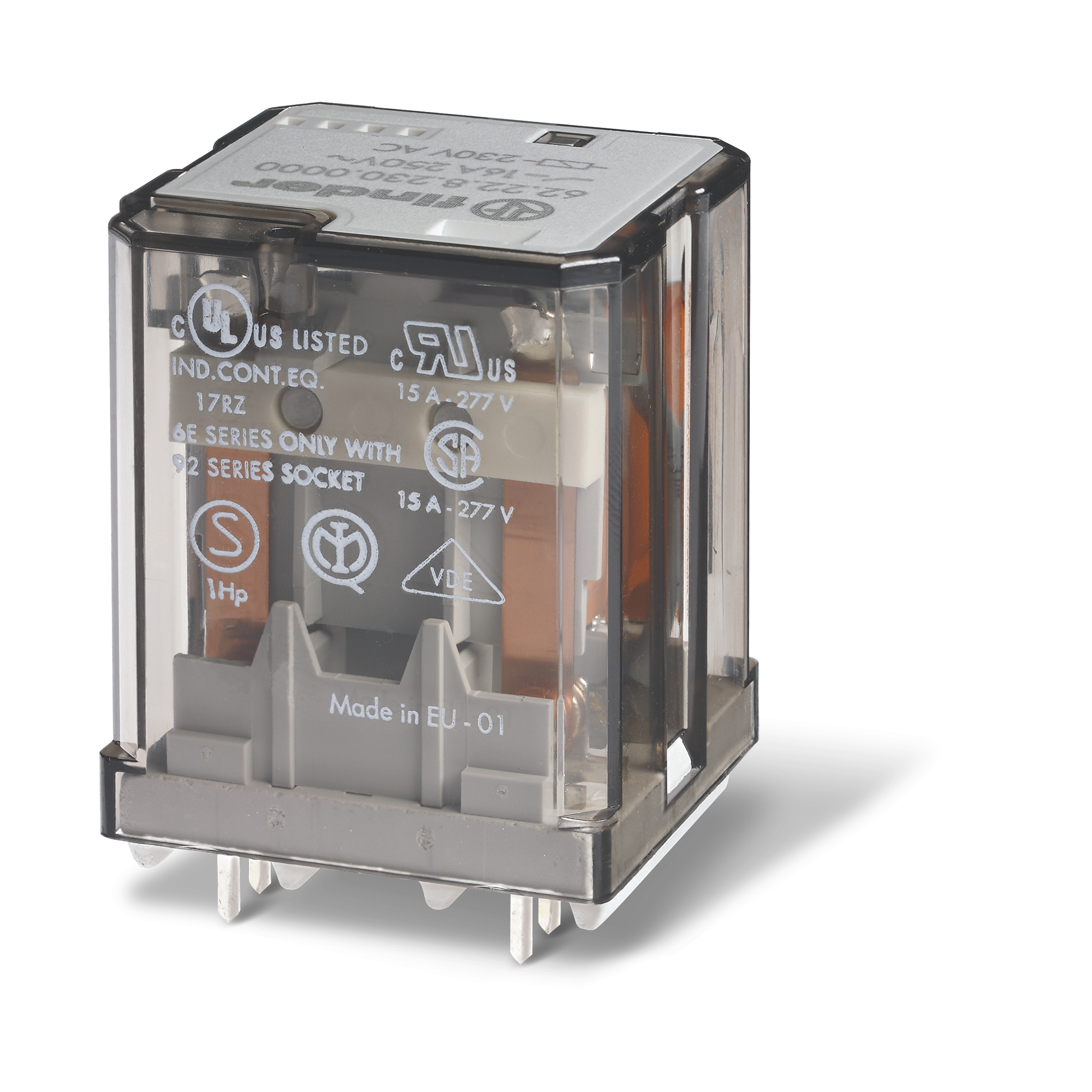 62.22-230-AC: POWER RELAY PCB MOUNT, 2CO 16A@250VAC, 230VAC COIL