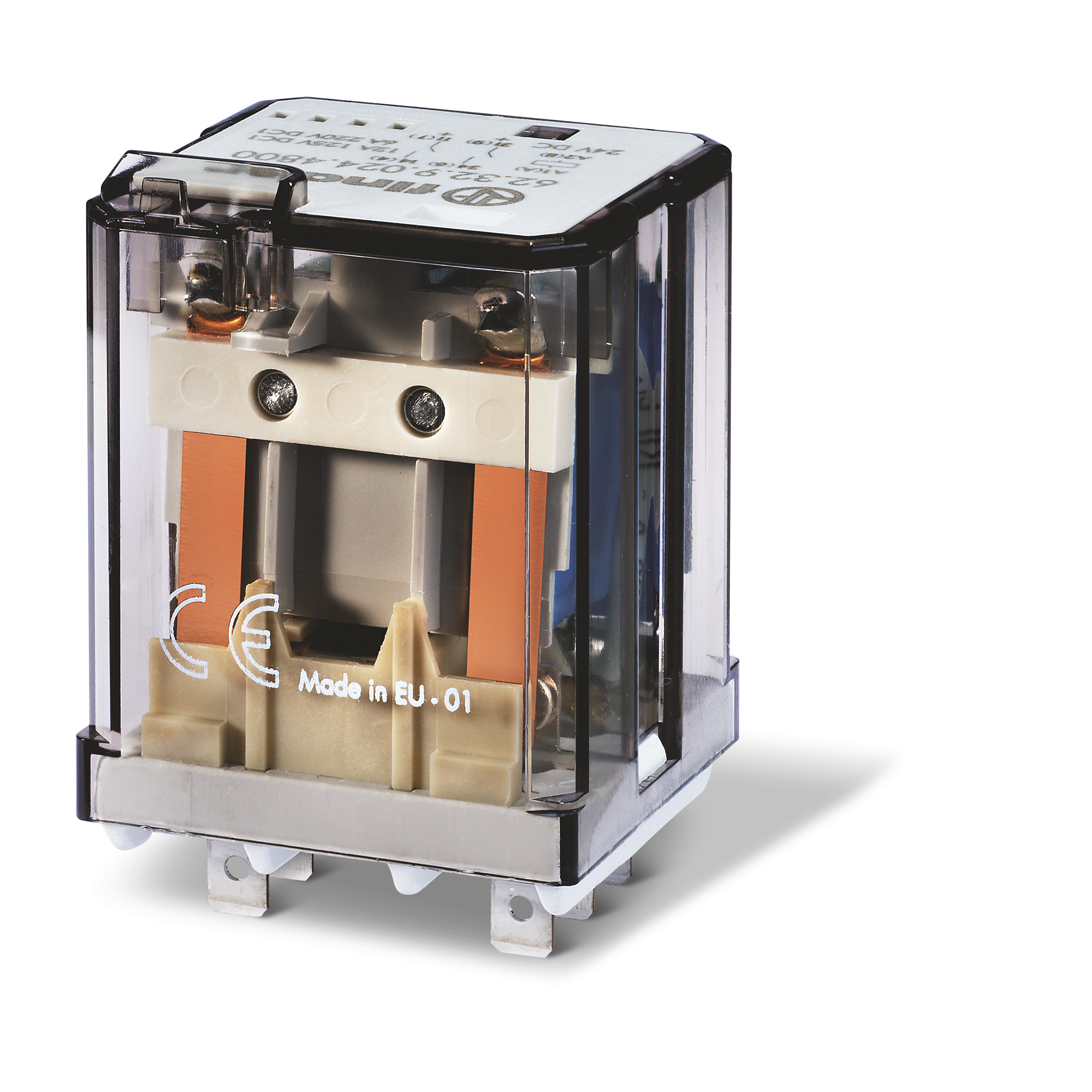 – 16 A power relay, 2 CO or NO contacts (NO contact gap ≥ 3 mm), socket mounting (92 Series) or directly via Faston 187 (4.8 x 0.5 mm). Equipped with AC or DC coil, LED, lockable test button and standard mechanical indicator. Reinforced insulation between coil and contacts according to EN 60335-1; clearance/creepage separation 6/8 mm.