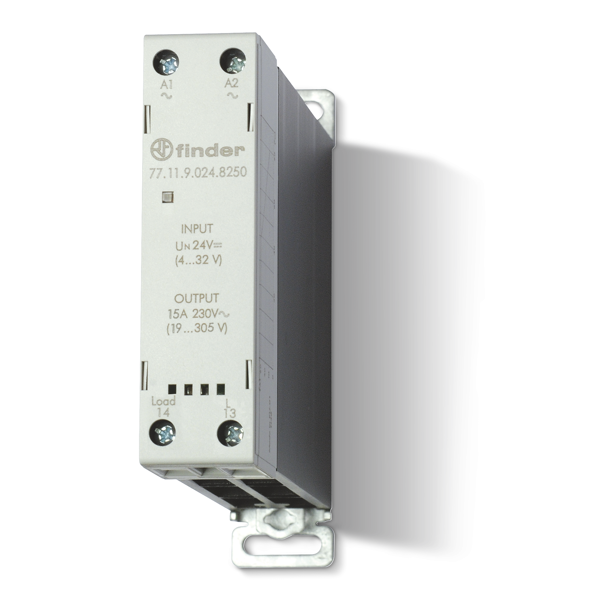 Finder Type 77.11 SSR, INTEGRAL HEATSINK, DIN MOUNT ZERO CROSSING 15A 230VAC LOAD, 24VDC CONTROL