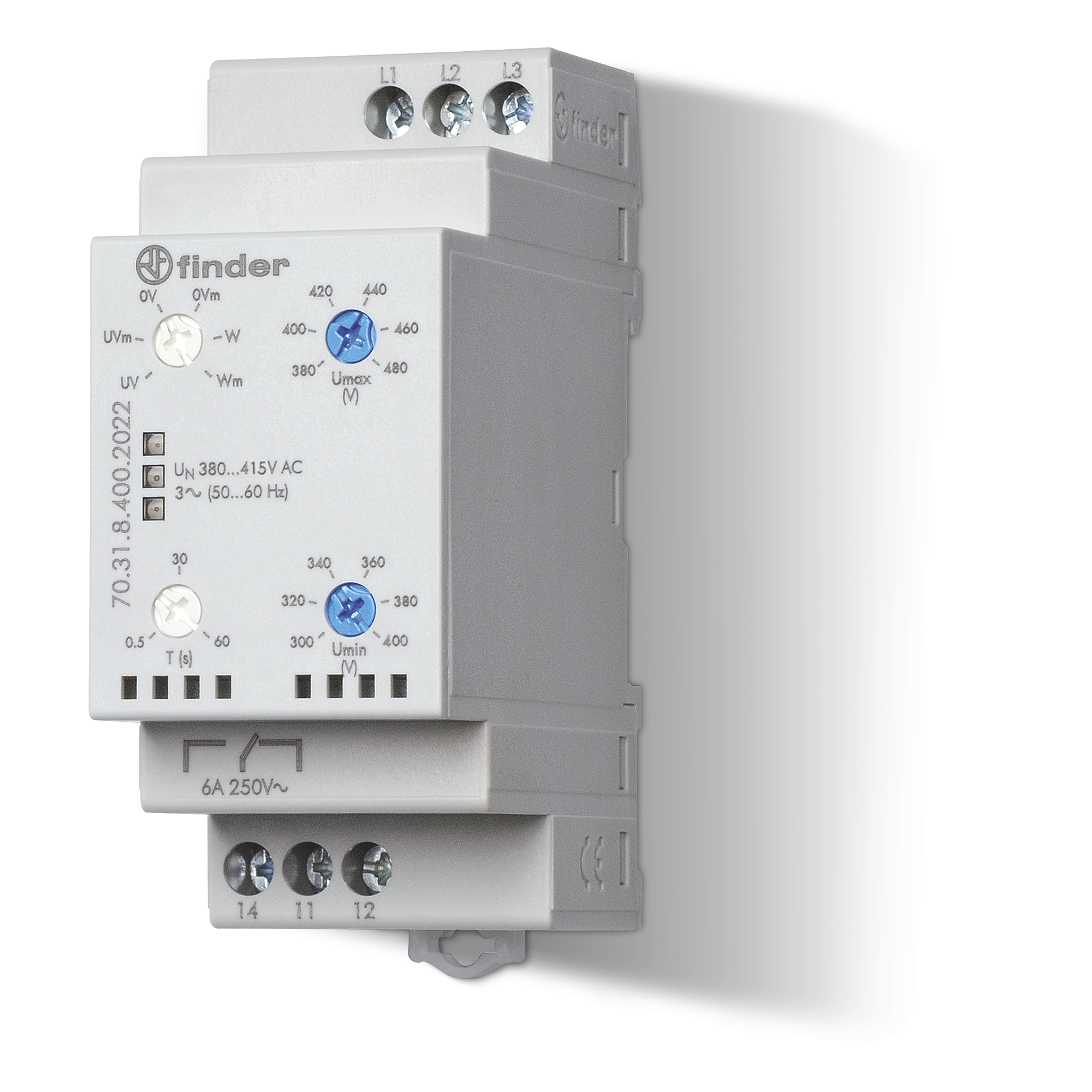 Finder VOLTAGE MONITORING RELAY, 3P3W UNDER+OVER+WINDOW, 380-415VAC