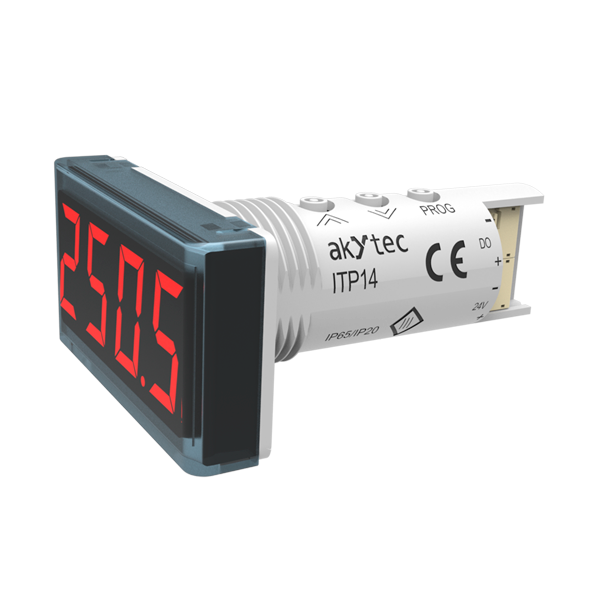 The ITP14 is a versatile process indicator designed for monitoring and controlling industrial processes. This display features a configurable analog input and a digital output, enabling ON/OFF control functionality. The ITP14’s compact and standardized design fits into a standard 22.5 mm borehole for signal lamps, allowing for quick and straightforward installation.